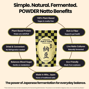 Carefully produced in Japan, Natto Powder bridges time-honored fermentation with contemporary usability —