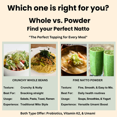 By transforming fermented soybeans into a fine powder, natto becomes easier to use, easier to store, and more adaptable to modern lifestyles.